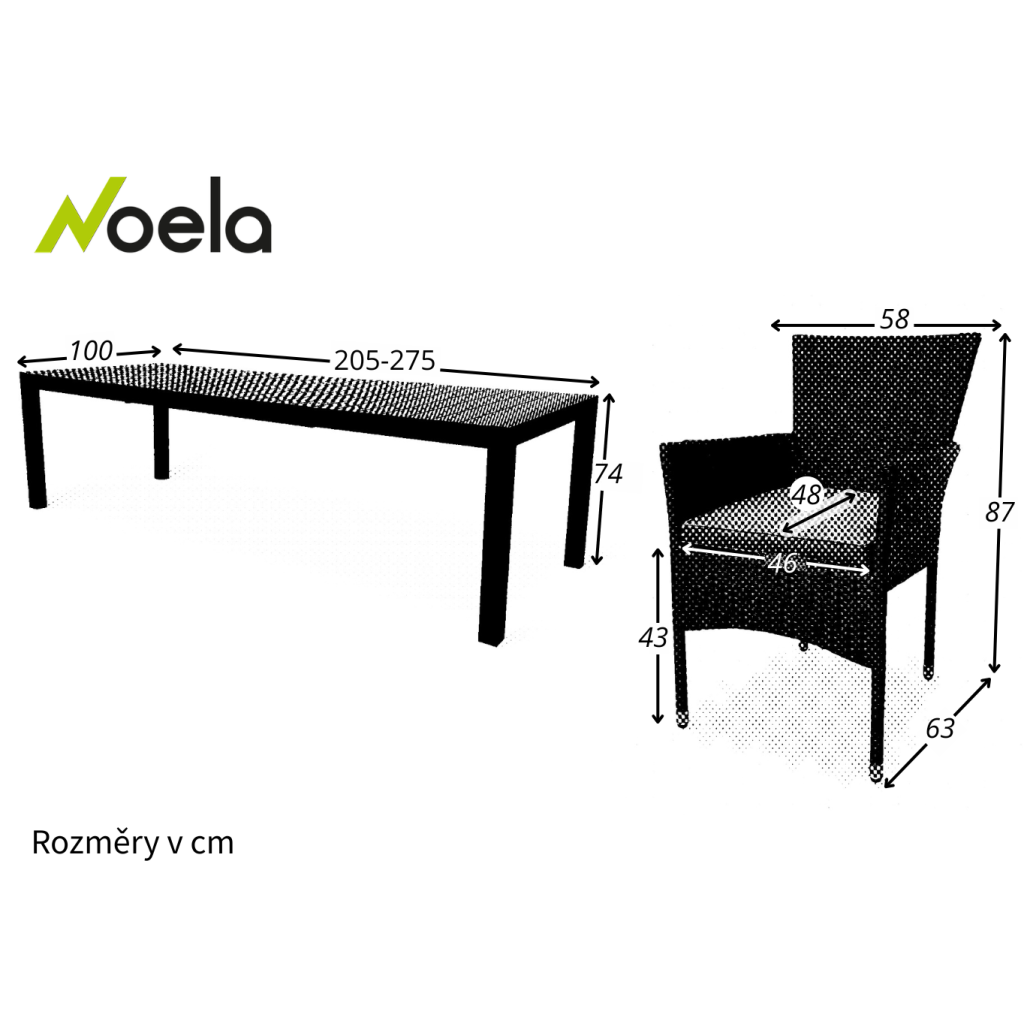 Rozmery stola: 100 cm x 205/275 cm x 74 cm (Hĺbka x Šírka x Výška)