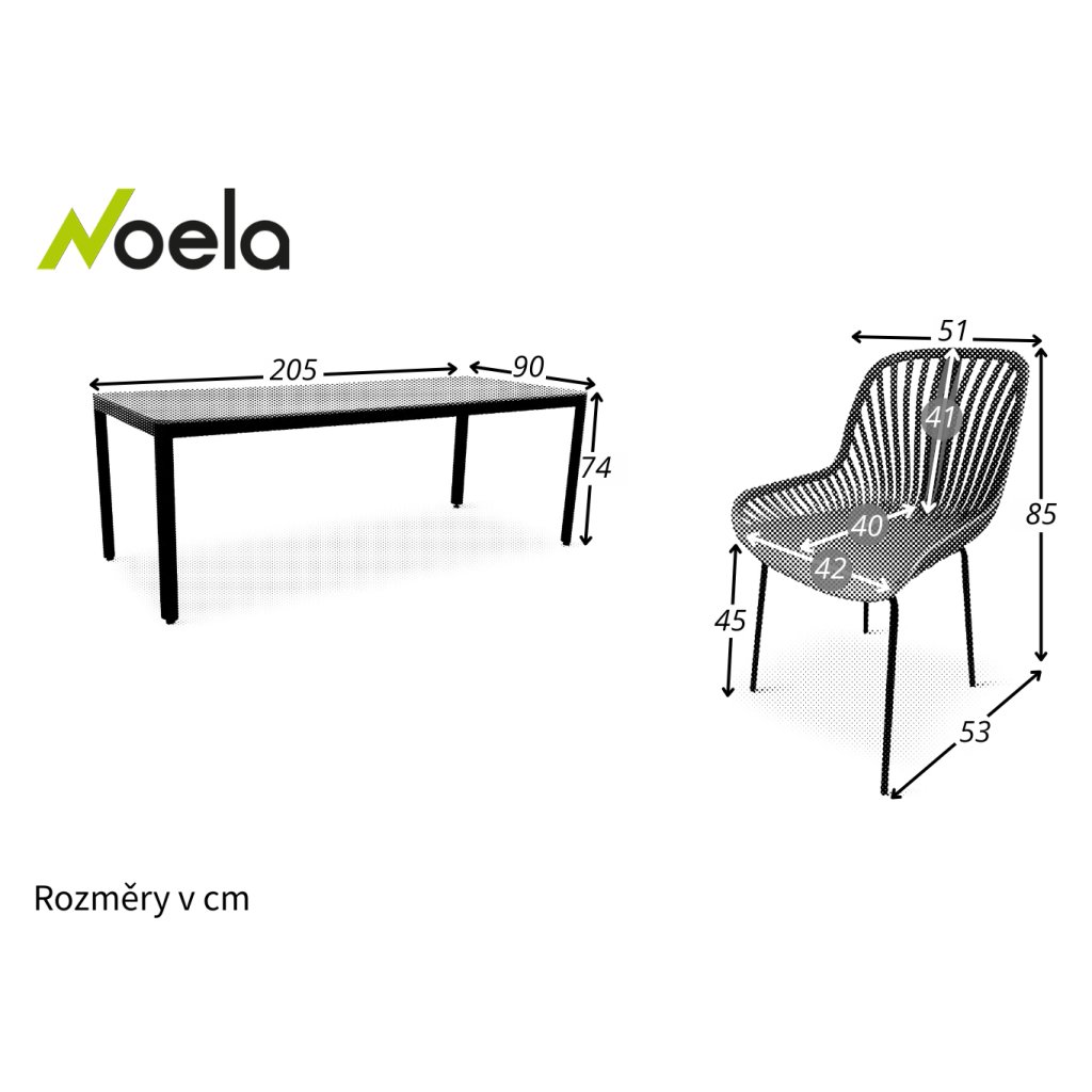 Rozmery stola: 90 cm x 205 cm x 74 cm (Hĺbka x Šírka x Výška)