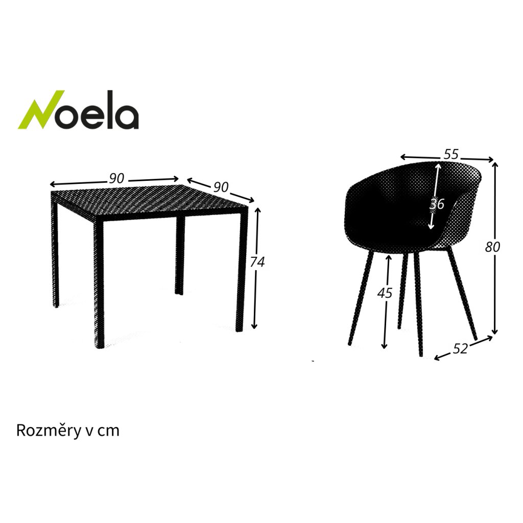 Rozmery stola: 90 cm x 90 cm x 74 cm (Hĺbka x Šírka x Výška)