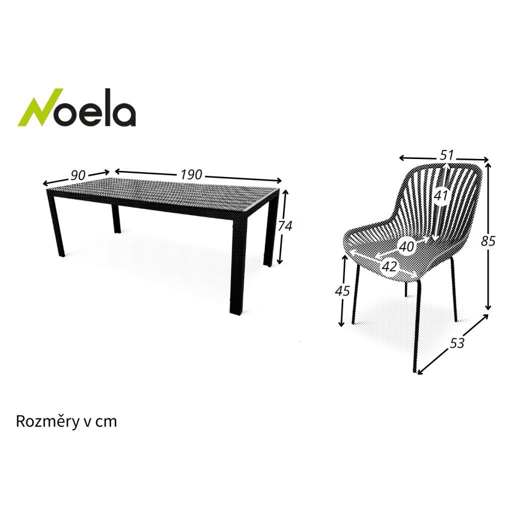 Jedálenský stôl dopĺňajú dizajnové stoličky GABY v šedej farbe vhodné aj na použitie vonku na záhrade. Stoličku tvorí sedačka a opierka z polypropylénu na 4 pevných nohách z ocele. Zvolený vzdušný dizajn opierky oceníte najmä v letných mesiacoch.
