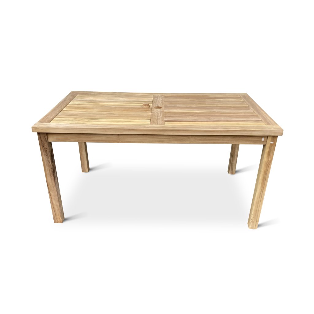 Robustný obdĺžnikový stôl Garden I, ktorý je svojimi rozmermi 150 x 90 cm optimálny pre 4-6 osôb. Drevená doska stola o hrúbke 2,7 cm má uprostred praktický otvor pre slnečník o priemere 6 cm. Dodávané vrátane drevenej zátky.
