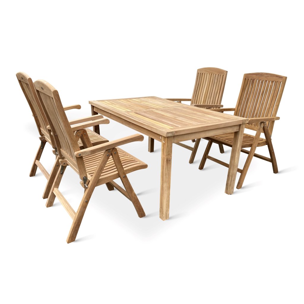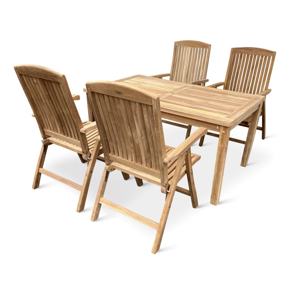 Naša teaková záhradná súprava bude ozdobou Vašej záhrady alebo terasy. Oceníte jej luxusný vzhľad, ale aj vynikajúce vlastnosti teakového dreva.