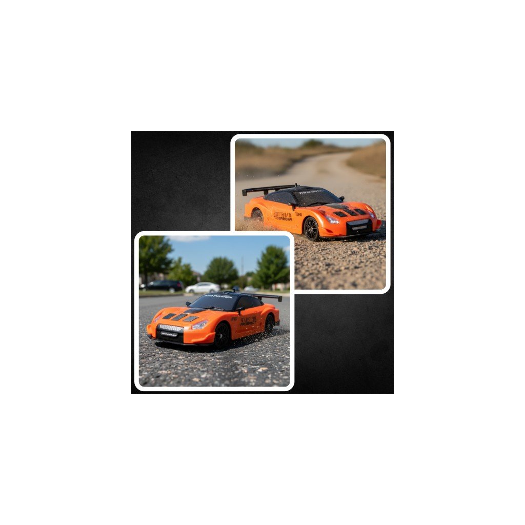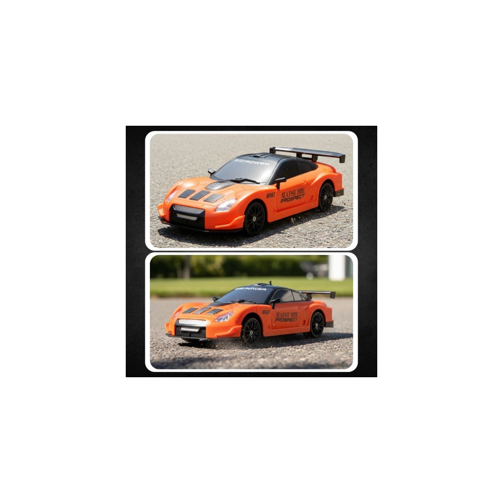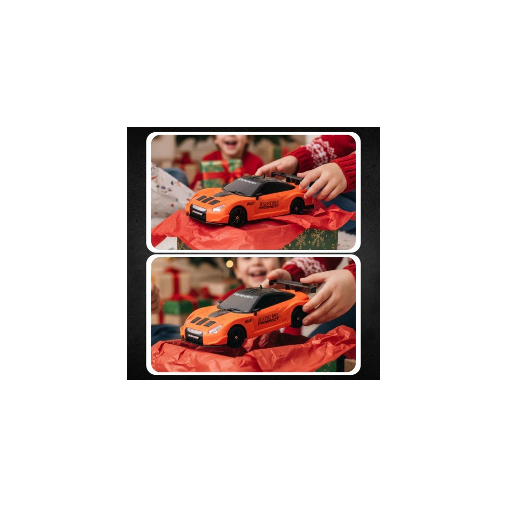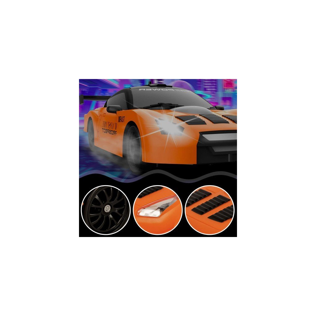 Závodní auto na dálkové ovládání pro drift – RC model 4x4 s LED efekty, 15 km/h, oranžová barva