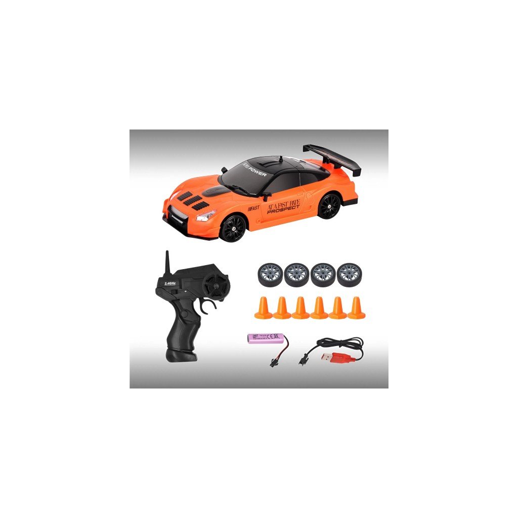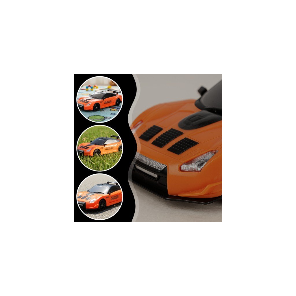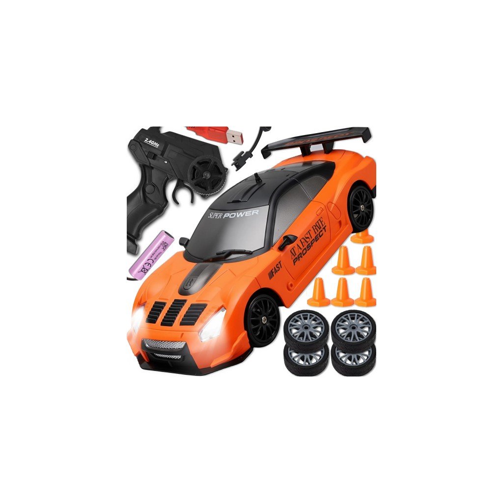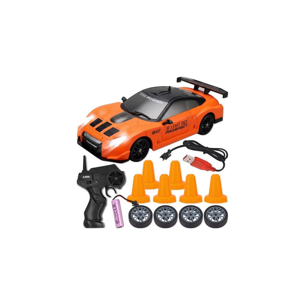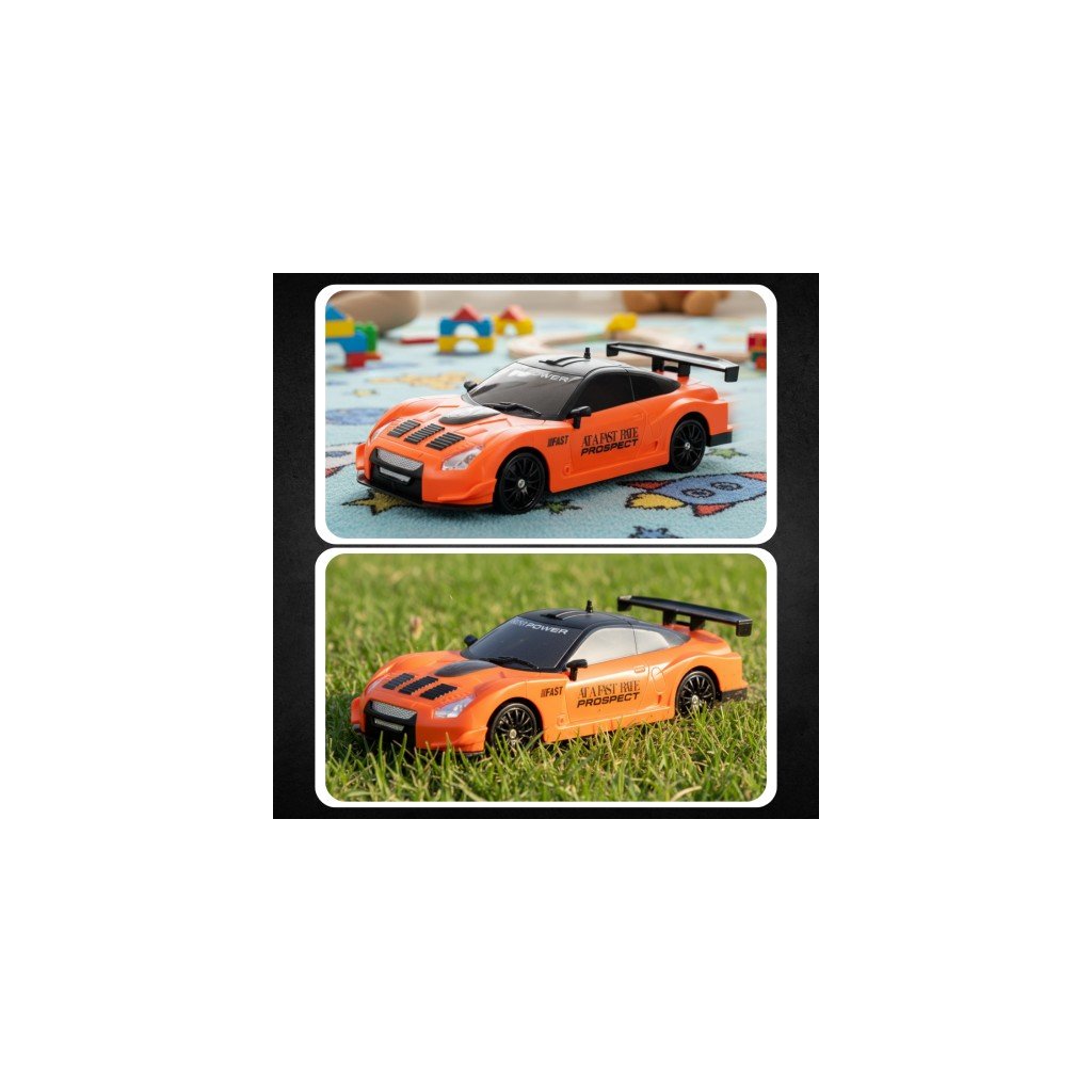 Závodní auto na dálkové ovládání pro drift – RC model 4x4 s LED efekty, 15 km/h, oranžová barva