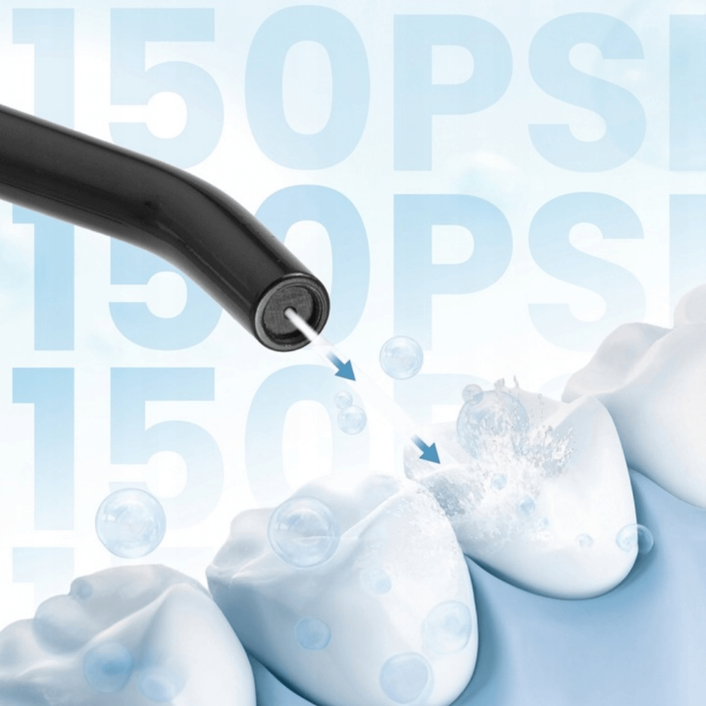 - MAXIMÁLNY TLAK 60-150 PSI – efektívne čistenie medzizubných priestorov a ťažko prístupných miest