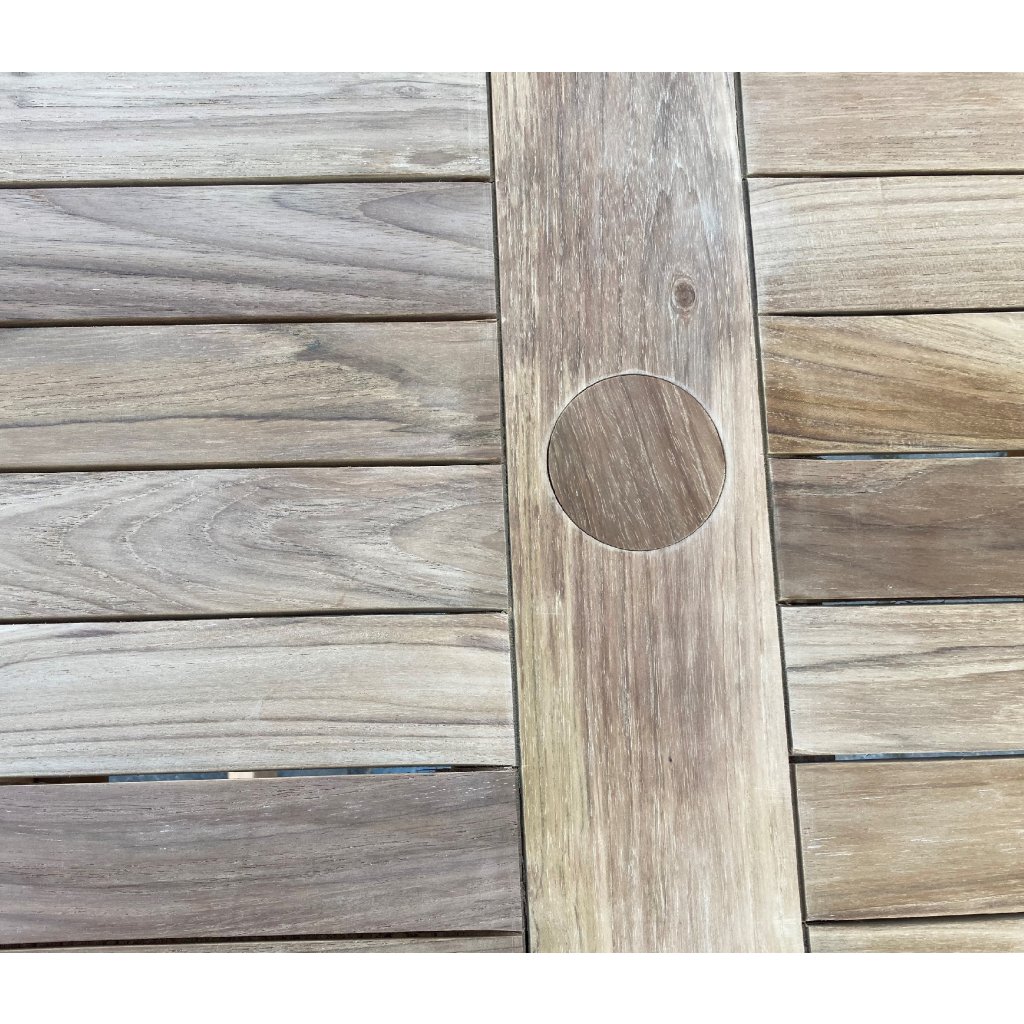 Síla materiálu (deska x noha) 2,7 cm x 2,7 cm. Otvor pro slunečník o průměru 6 cm.