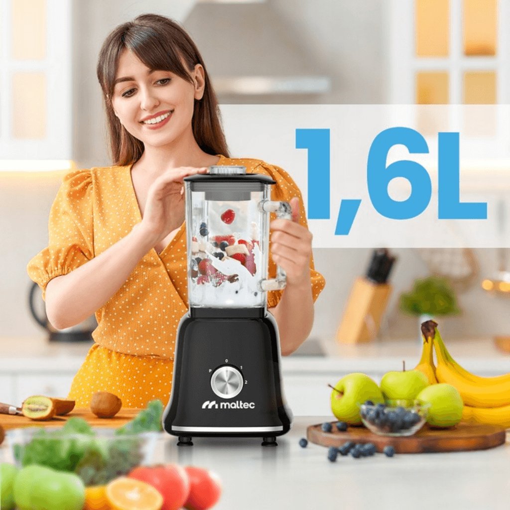 Mixér má skleněný kalich o objemu 1,6 litru, což vám umožní připravit velkou porci nápoje najednou – ideální řešení pro celou rodinu!
