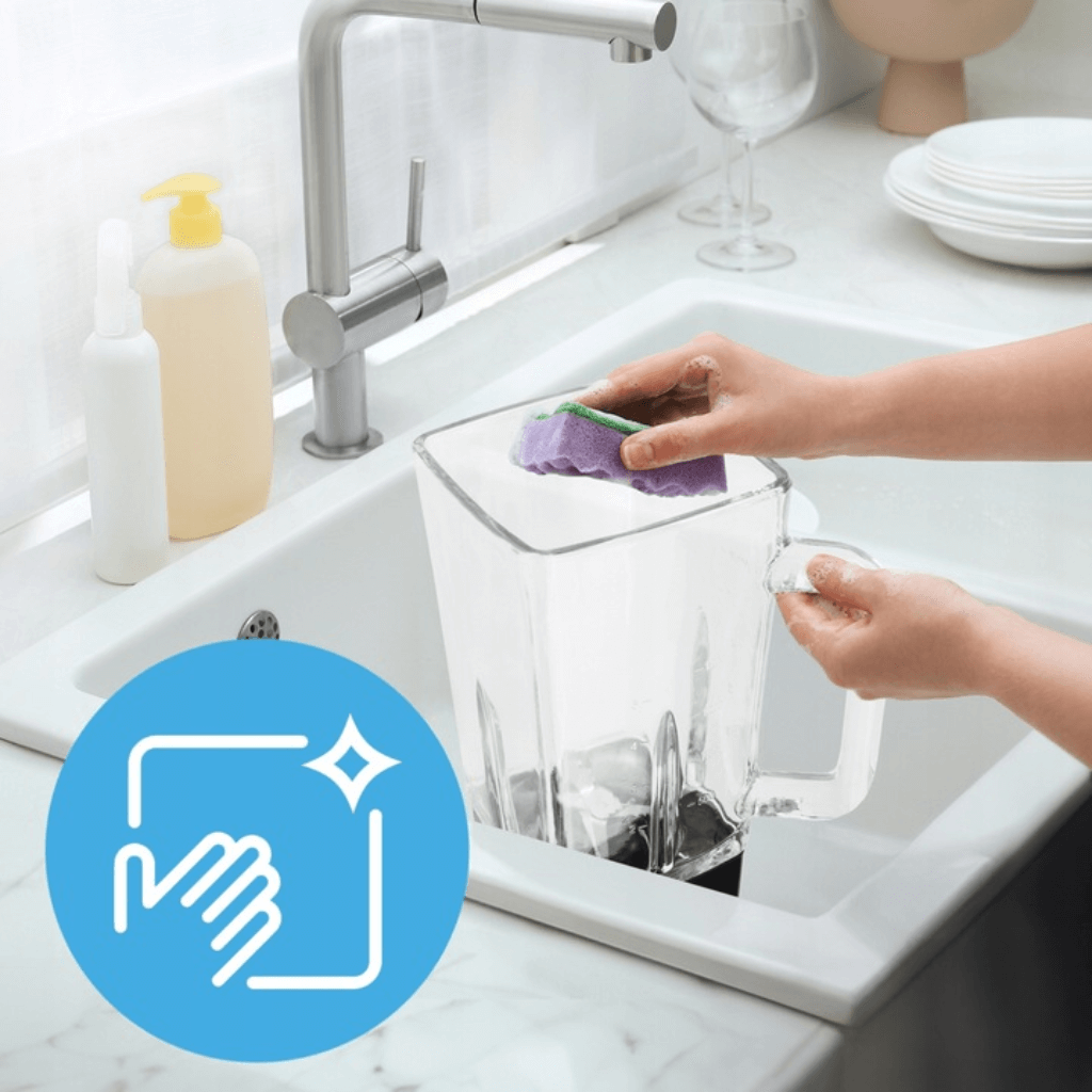 Pro ještě větší pohodlí – stačí přidat vodu s trochou jaru do kalichu a spustit pulzní režim na pár sekund – mixér se vyčistí sám.