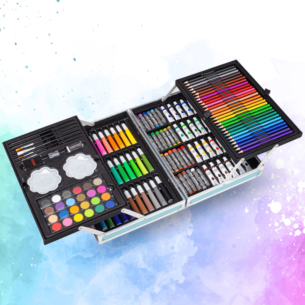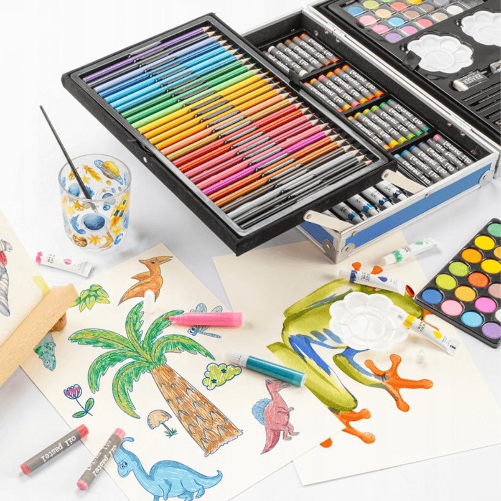 Tento bohatě vybavený umělecký set se 145 prvky je opravdovým pokladem pro malé tvůrce.