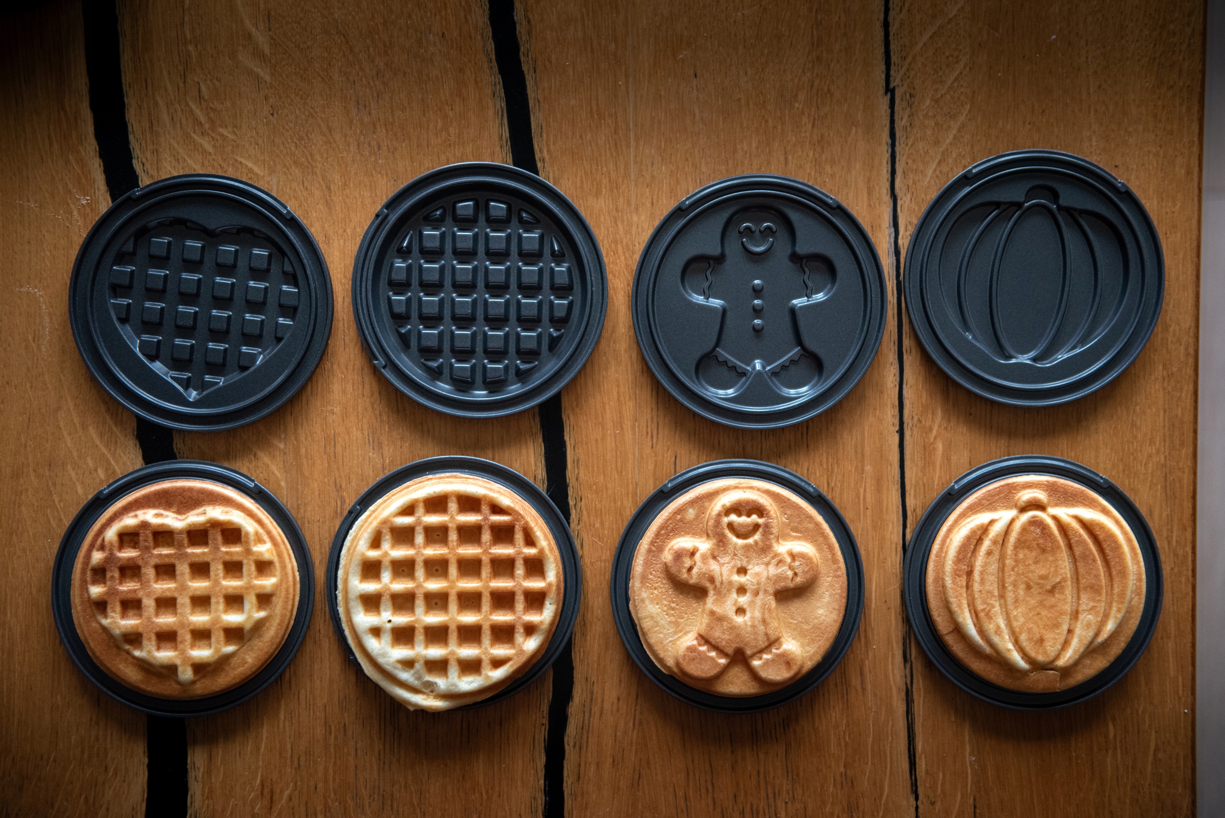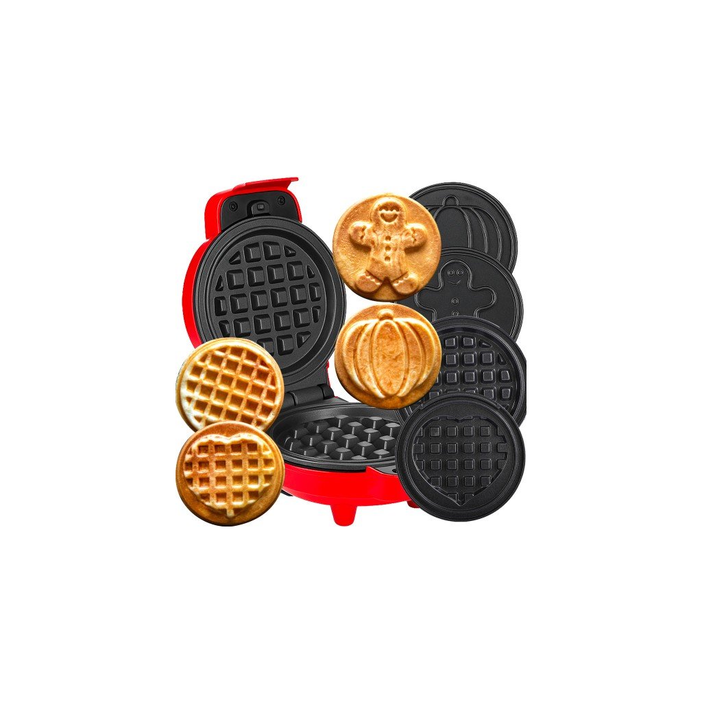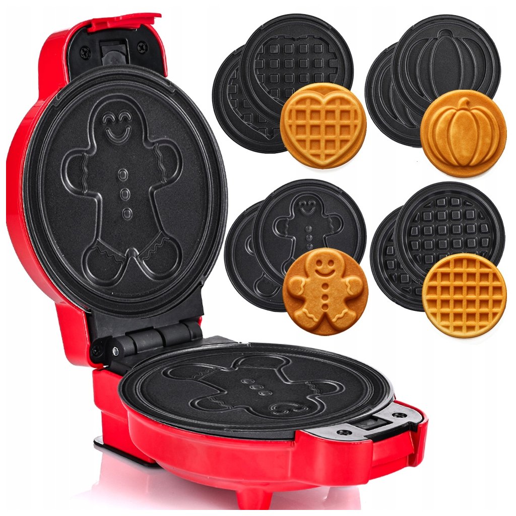 Díky čtyřem vyměnitelným deskám (dýně, perník, srdce, kruh) vykouzlíte vafle ideální pro každou příležitost – od narozeninových oslav až po vánoční překvapení.
