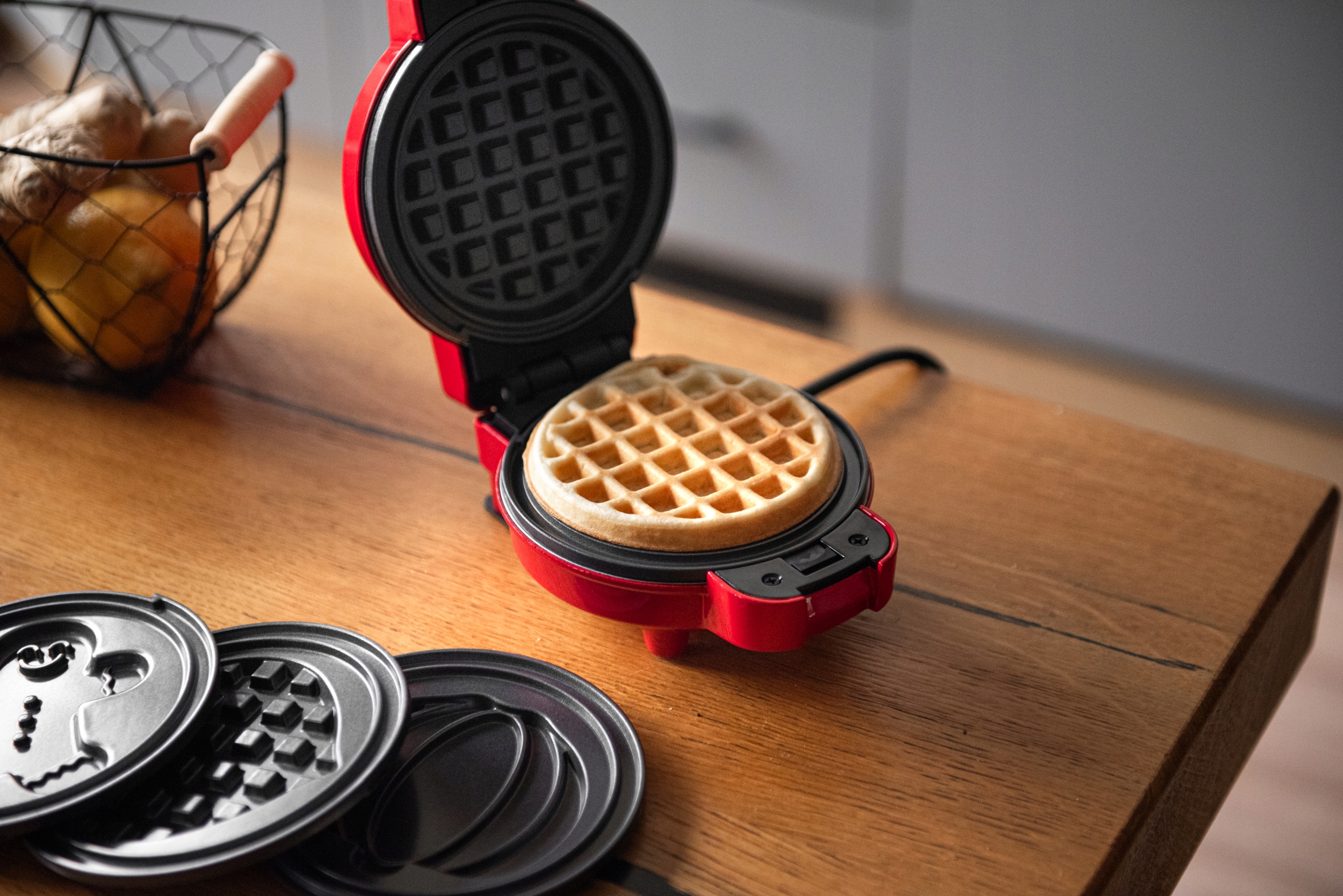 - 4 vyměnitelné destičky – Pro kreativní vafle (dýně, perník, srdce, kruh)