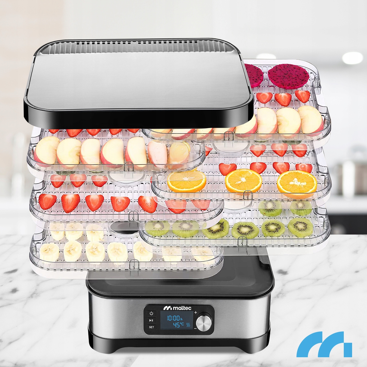 DehyLuxe 450 W – Sušička potravin s časovačem 24 h, LED displejem a 14,4 l kapacitou