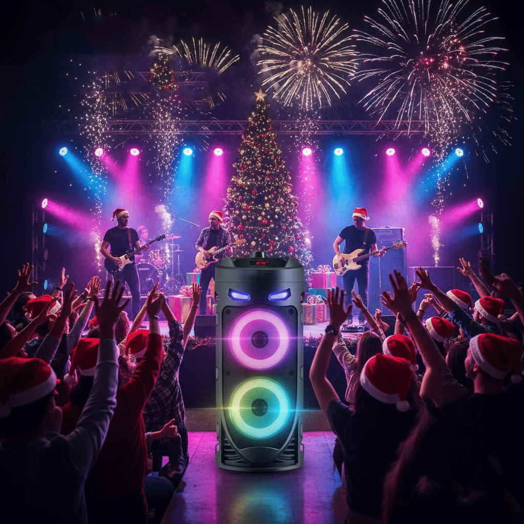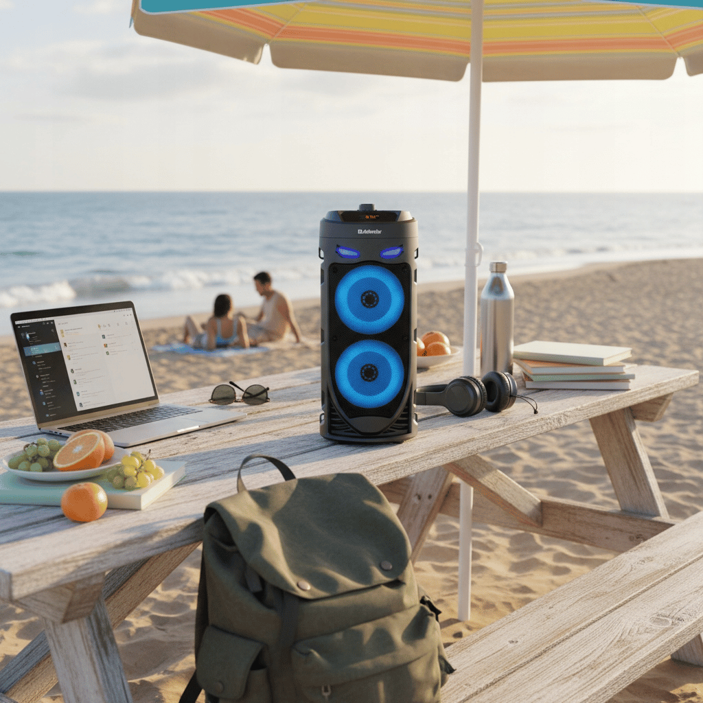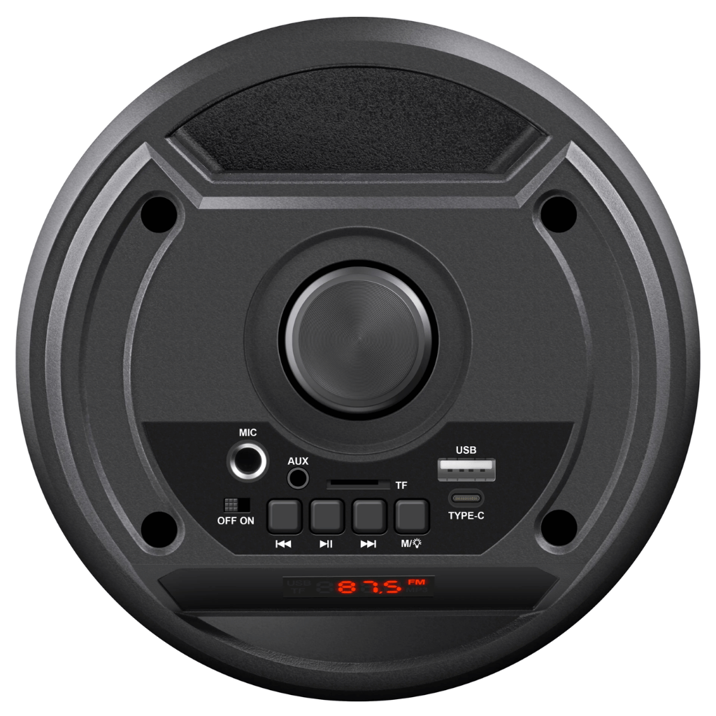 Tento stylový reproduktorem s RGB podsvícením, silným zvukem a karaoke funkcí je ideální pro domácí večírky, zahradní party i venkovní akce.