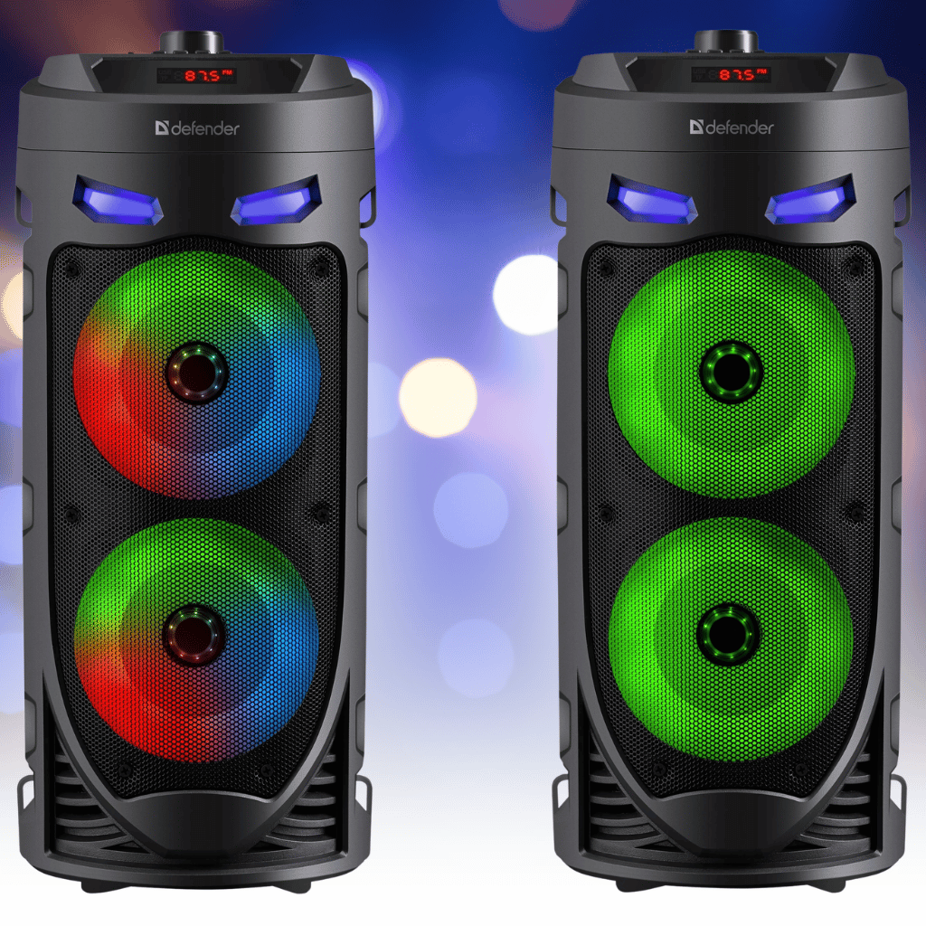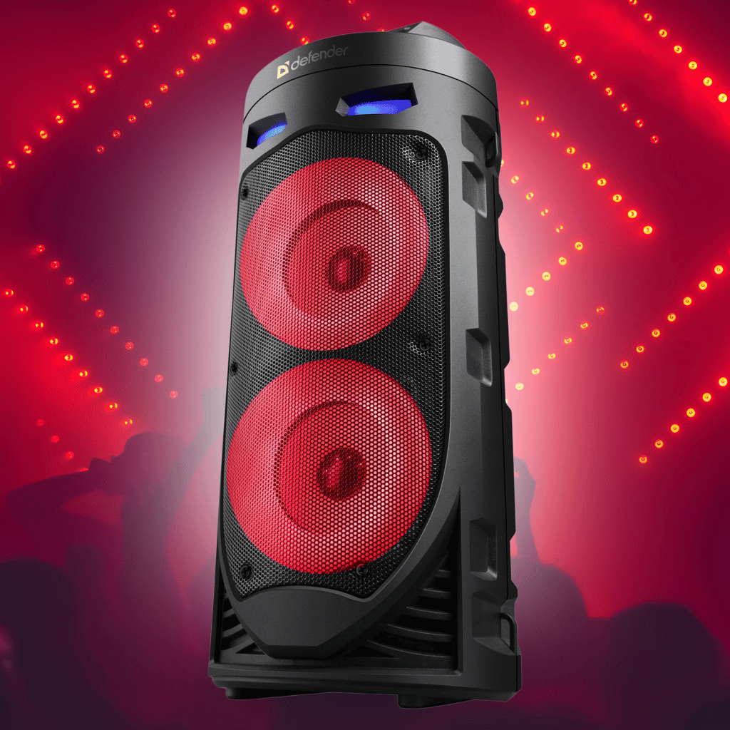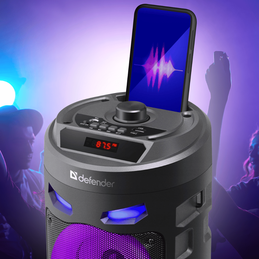 Dva výkonné reproduktory se postarají o čisté výšky, výrazné středy a hluboké basy, zatímco barevné LED efekty vytvoří tu pravou atmosféru.