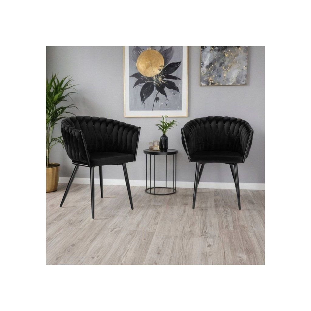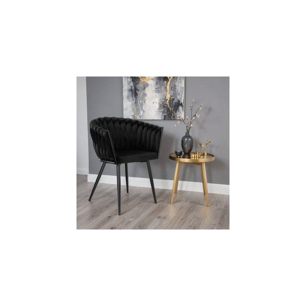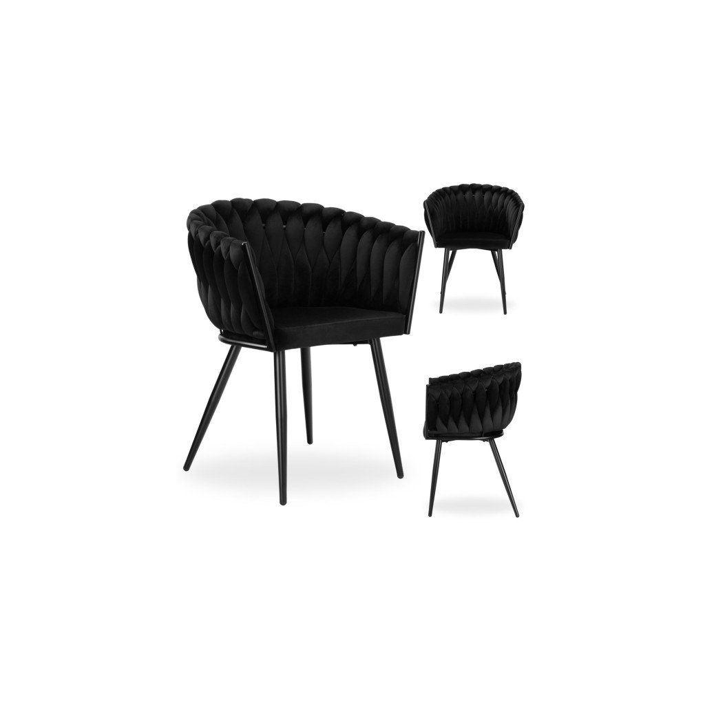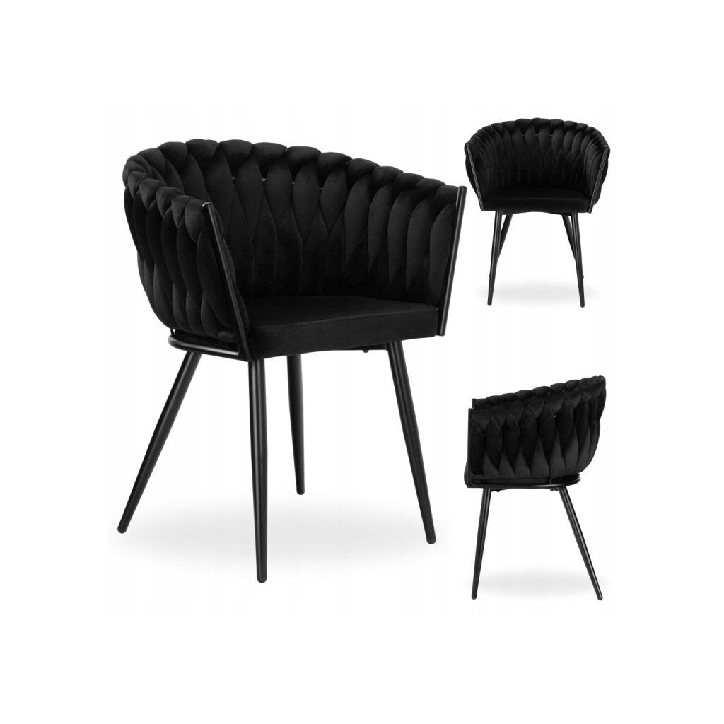 Velurové pletené křeslo černé