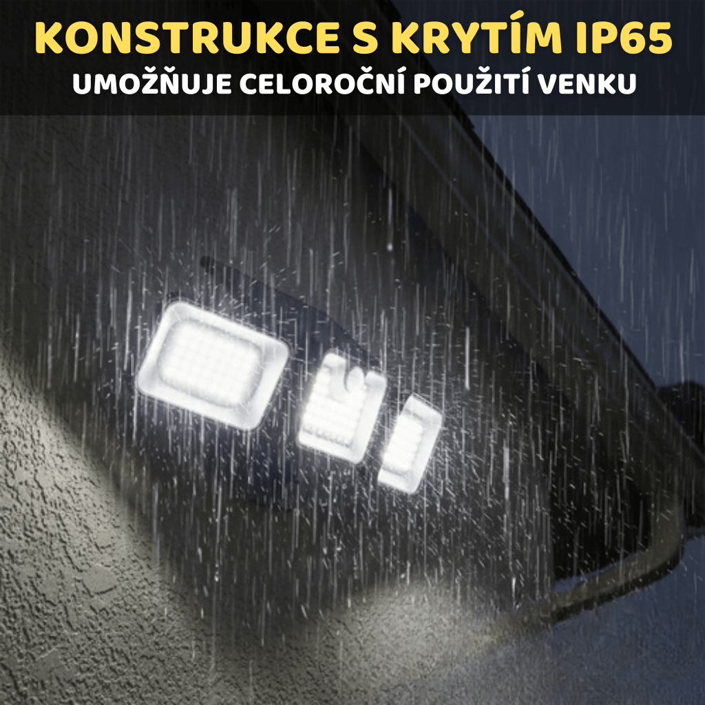 Vestavěný PIR pohybový senzor a soumrakový senzor ovládají automatický provoz – při detekci pohybu svítí 30s na 100 % výkonu a poté se vrací do úsporného režimu.