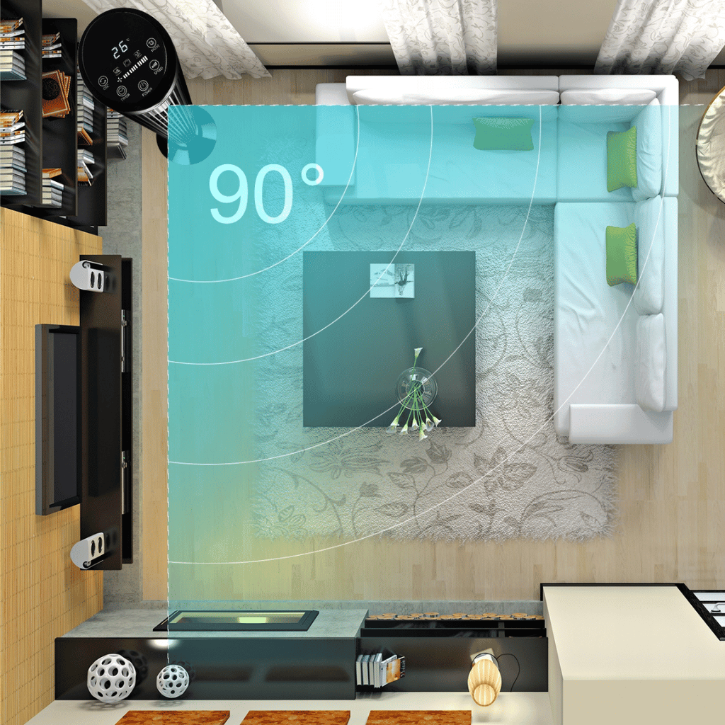Díky turbínovému systému proudění rozvádí vzduch rovnoměrně po celé své výšce, což zajišťuje efektivní a příjemné chlazení.
