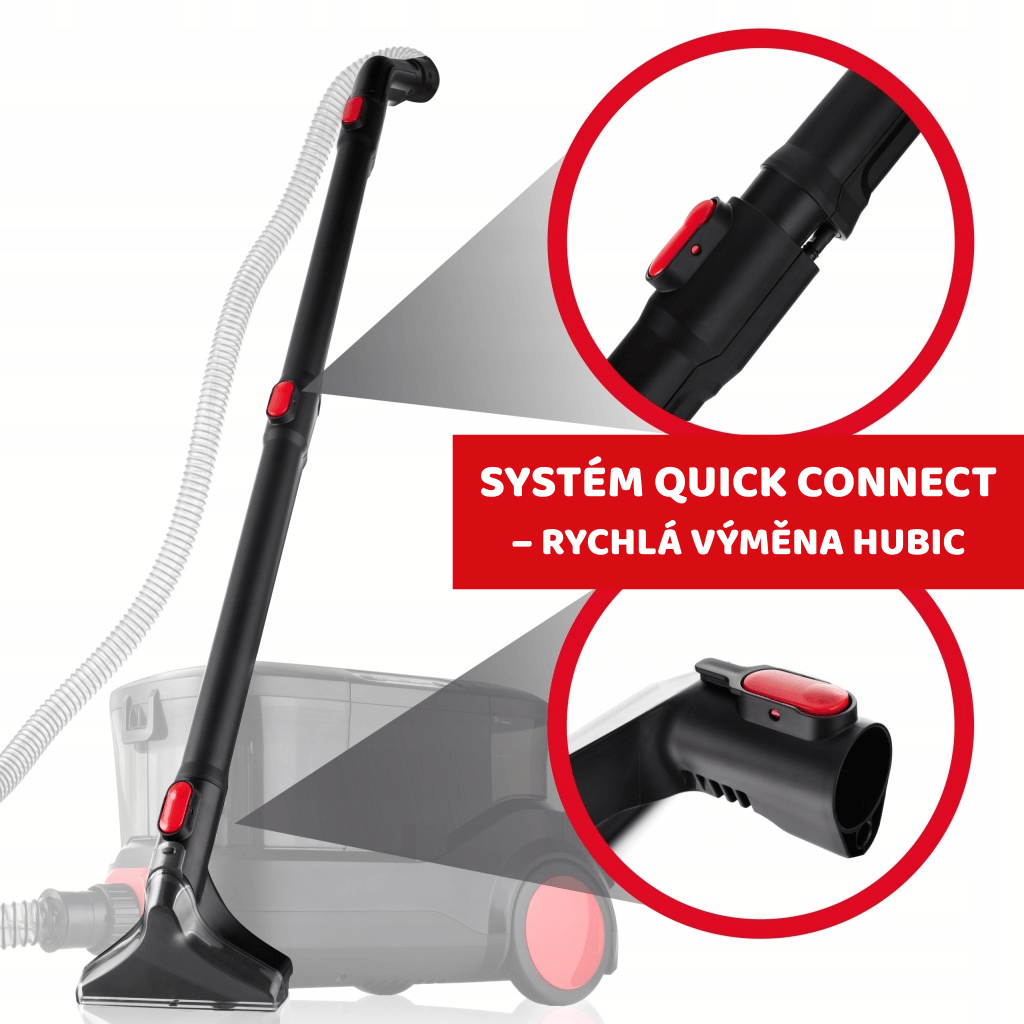 Integrovaná hadička čisticího prostředku je ukrytá v trubce vysavače, což zlepšuje ergonomii práce a zabraňuje úniku tekutin.