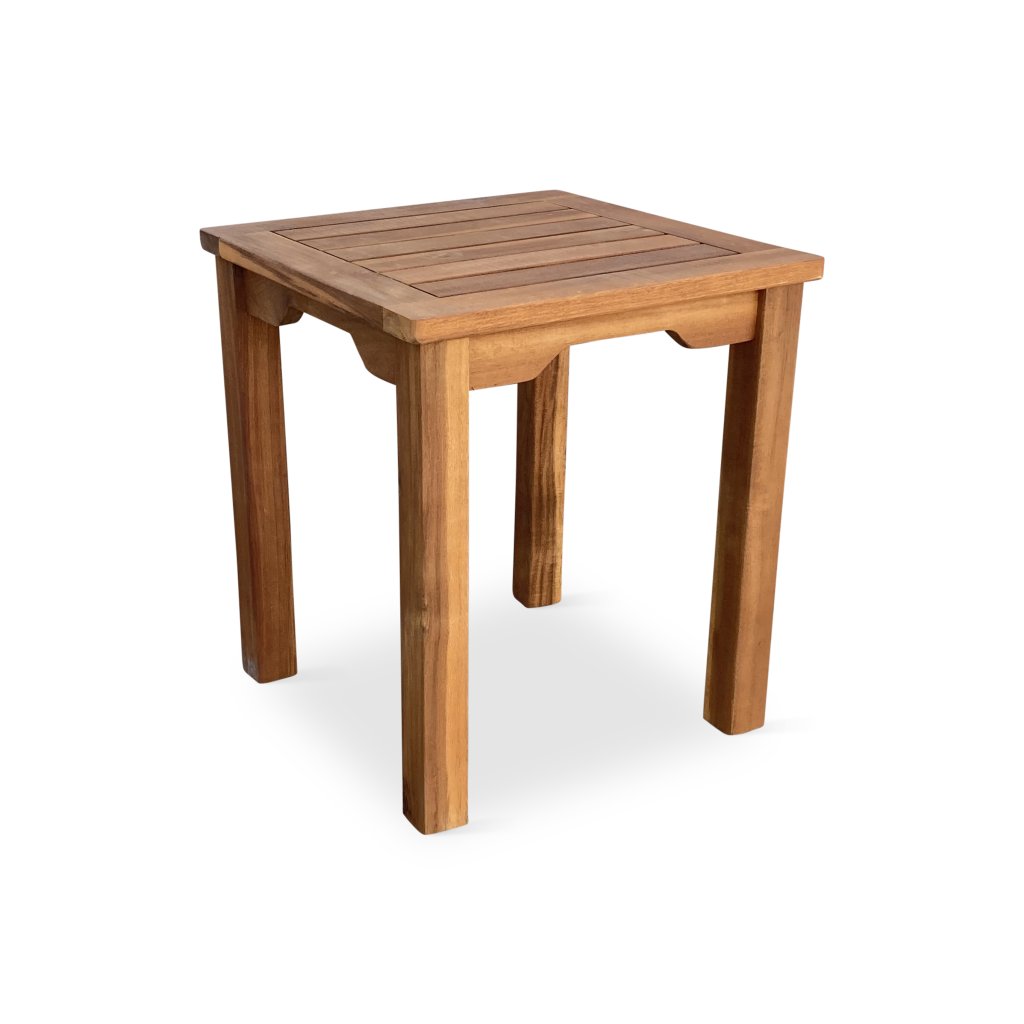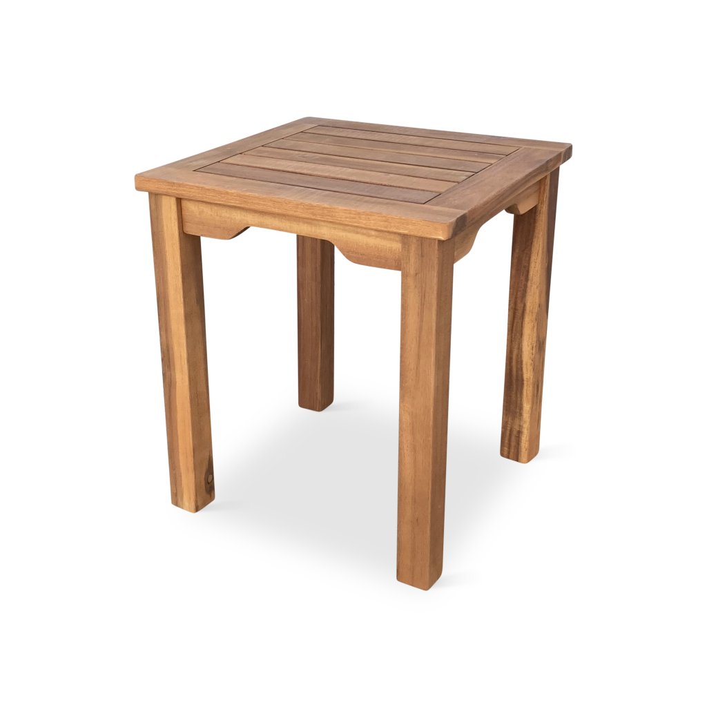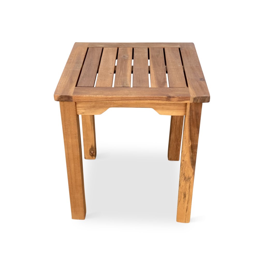Čtvercový odkládací stolek z akáciového dřeva, vhodný k lehátku, nebo jako podnožka pod nohy.