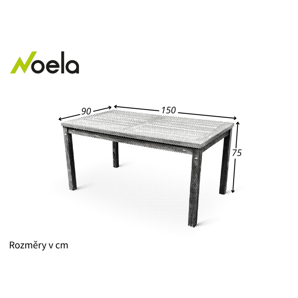 Síla materiálu (deska x noha) 2,7 cm x 6 cm. Otvor pro slunečník o průměru 6 cm.