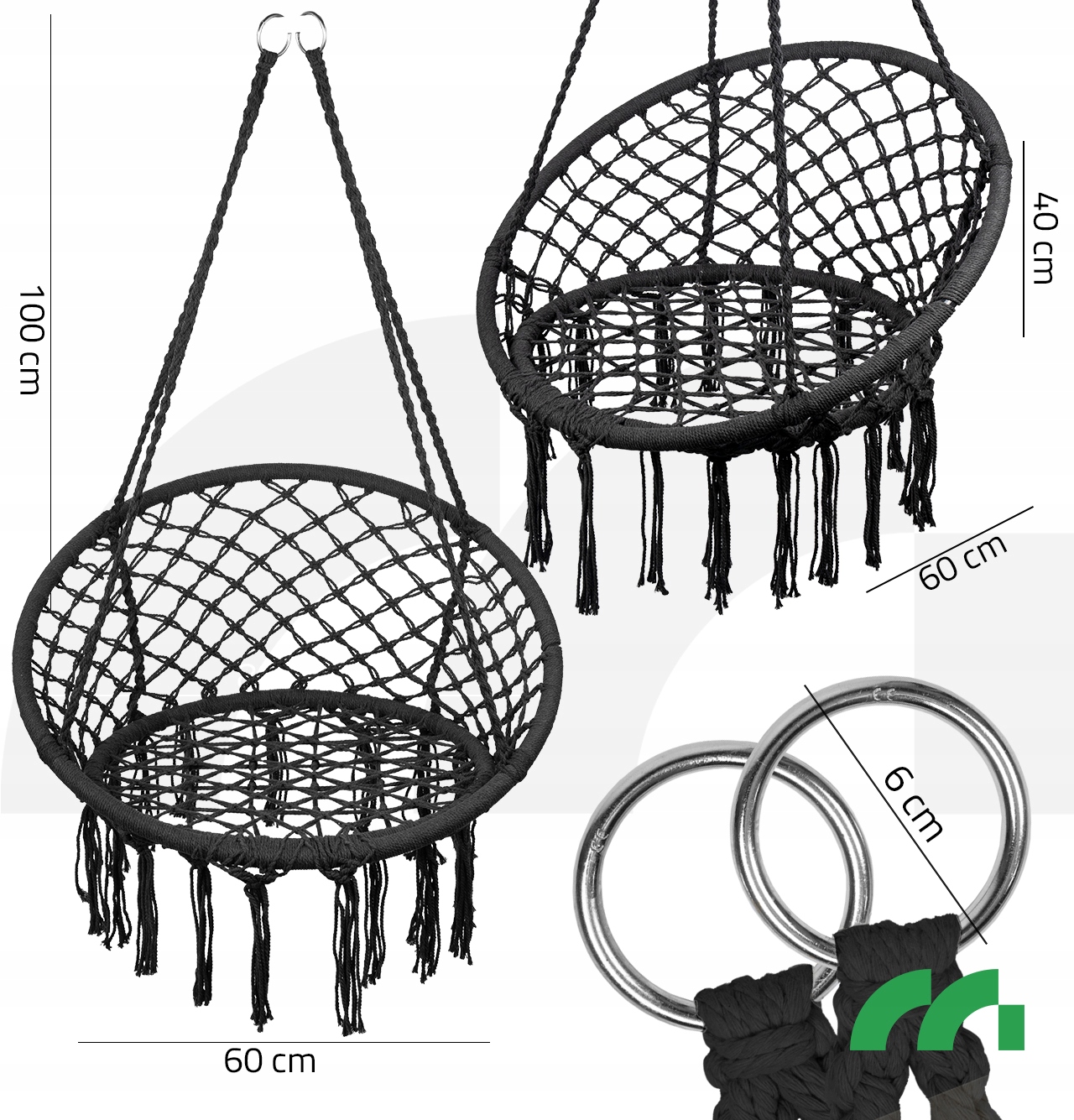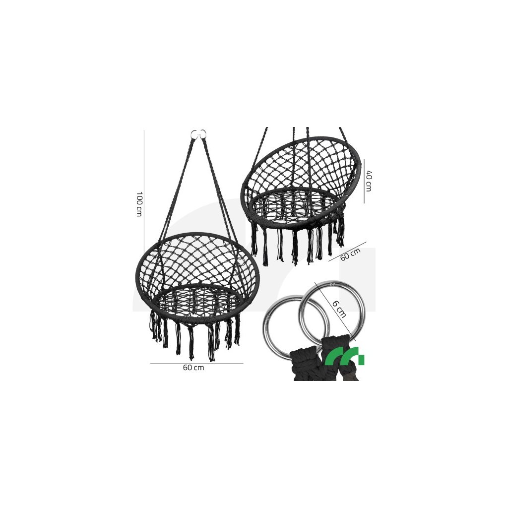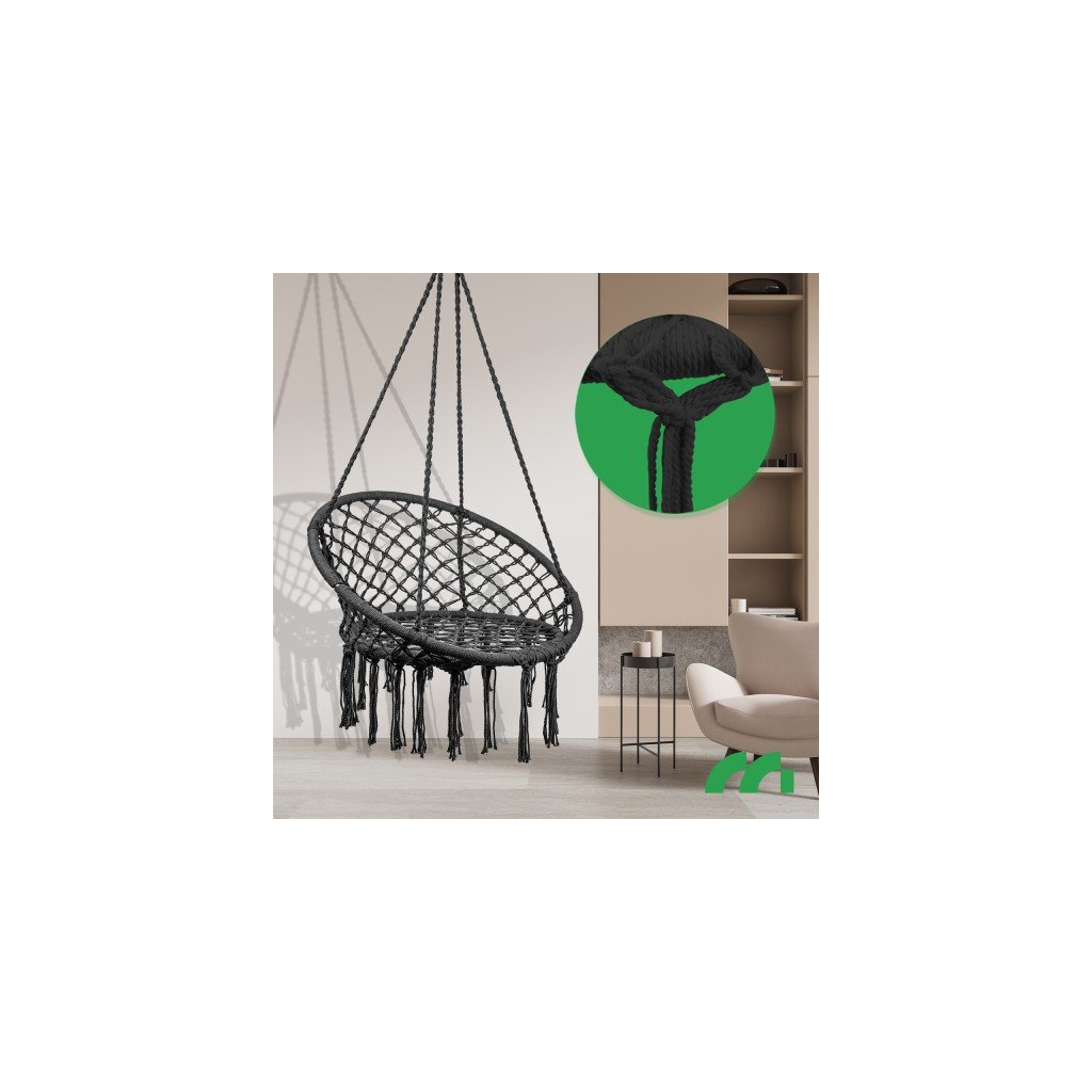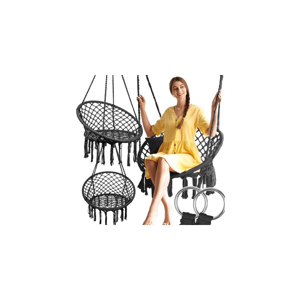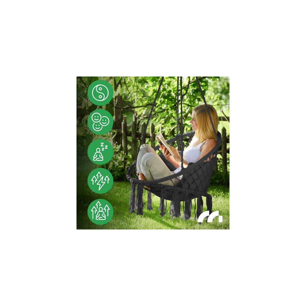 HarmonySeat 150 kg – Stylové závěsné křeslo BOHO černé pro domov i zahradu