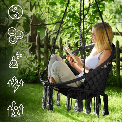 RelaxHaven 150 kg – Designové závěsné křeslo BOHO pro domov i zahradu, s polštářem v sadě