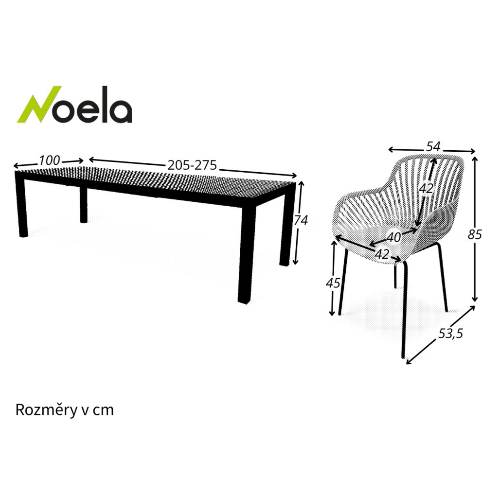 Jídelní stůl doplňuje designové křeslo GABY s područkou v šedé barvě vhodné i pro použití venku na zahradě. Křeslo tvoří sedák a opěrka z polypropylenu na 4 pevných nožkách z oceli. Zvolený vzdušný design opěrky oceníte zejména v letních měsících.
