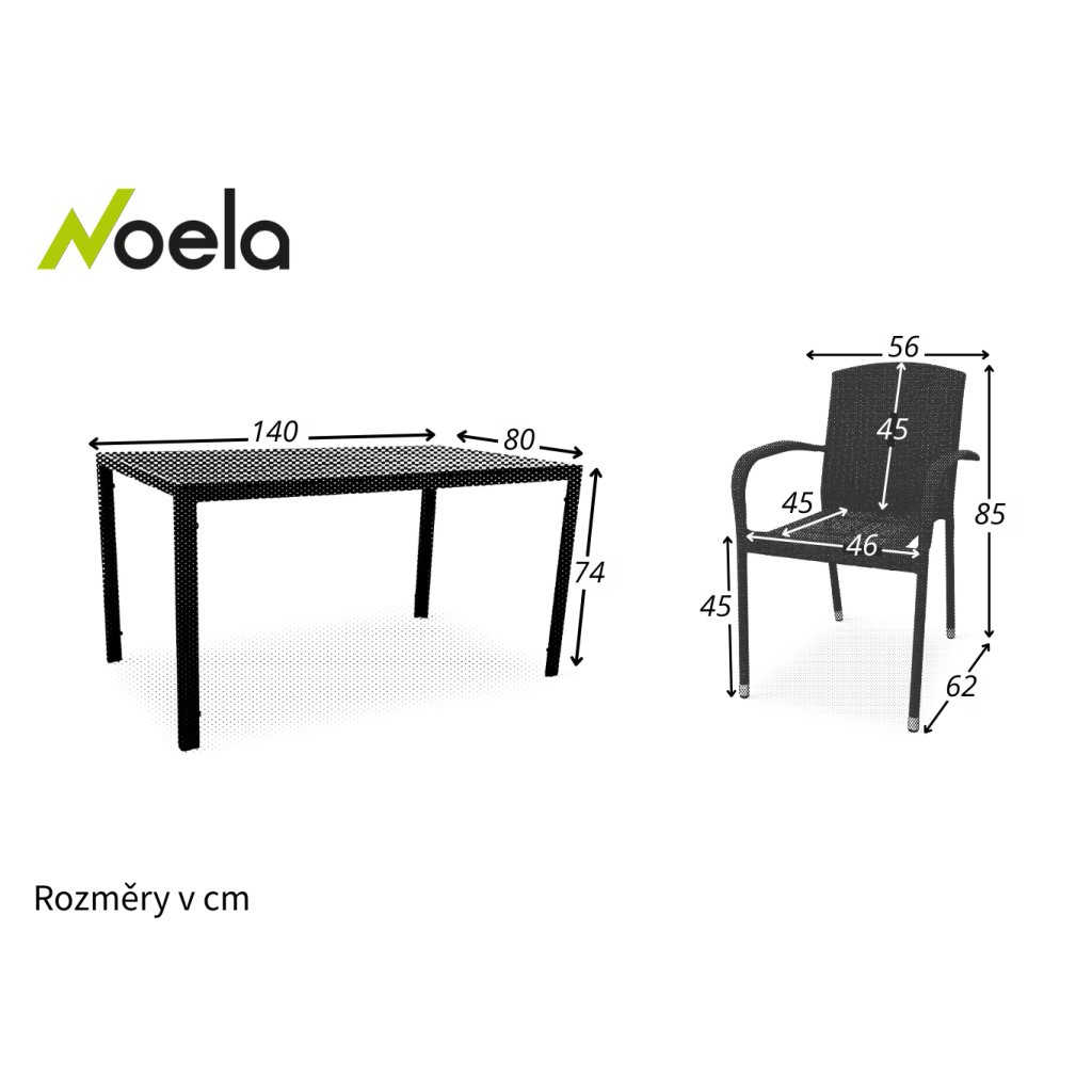 Sestavu tvoří Bezúdržbový kovový stůl Viking L 140cm a 4 Zahradní ratanové židle Roma.