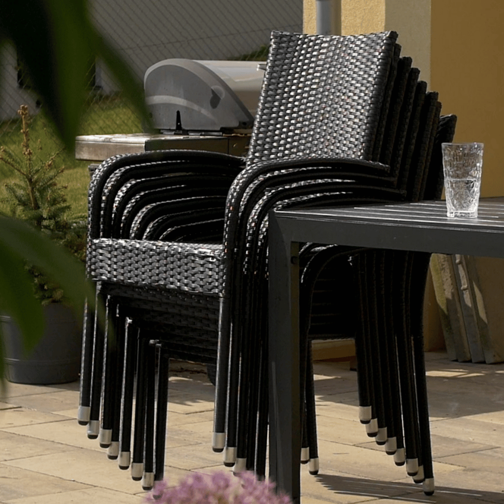 - Stohovatelné ratanové židle usnadňují skladování a šetří místo