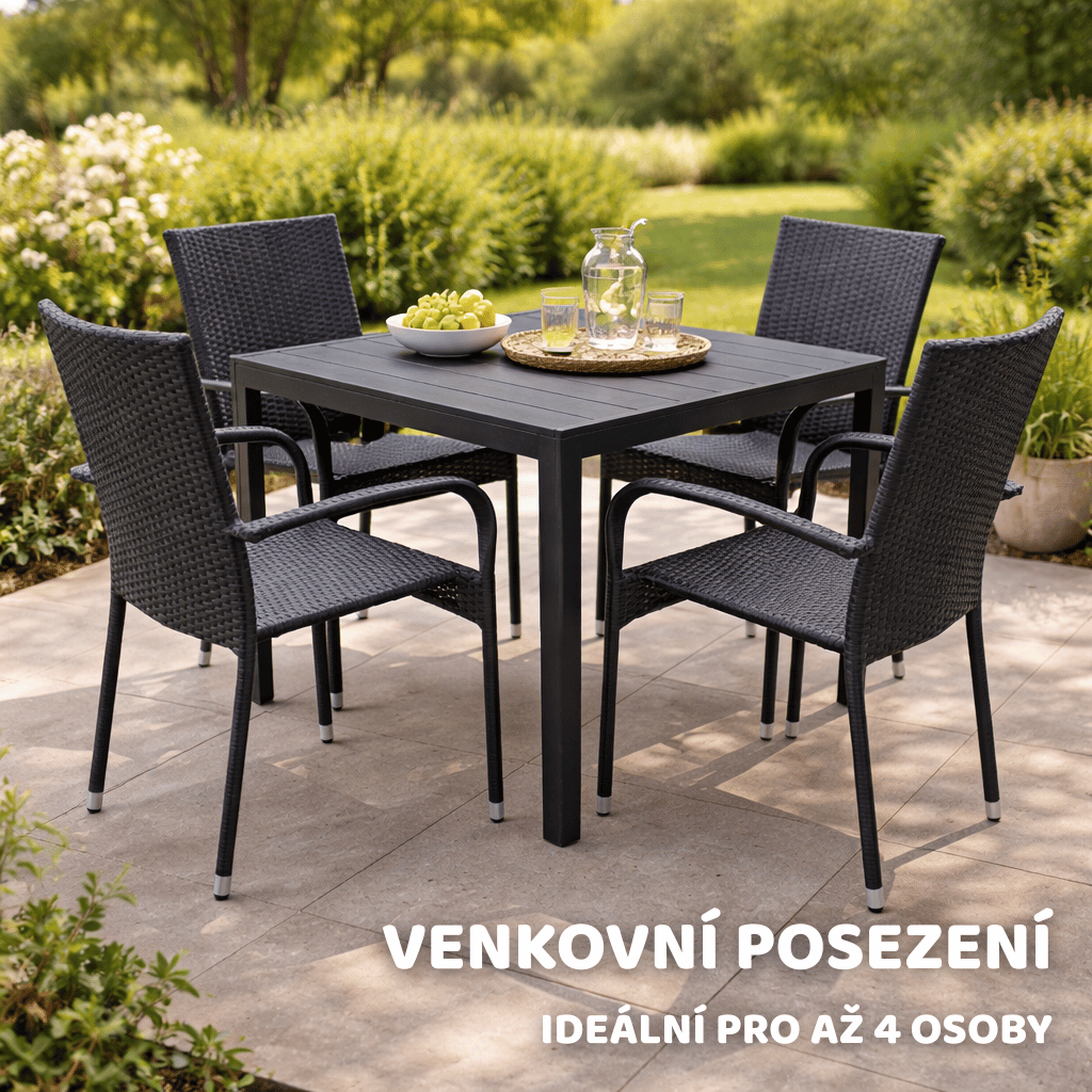 - Elegantní černý design hodící se k různým stylům zahradního nábytku
