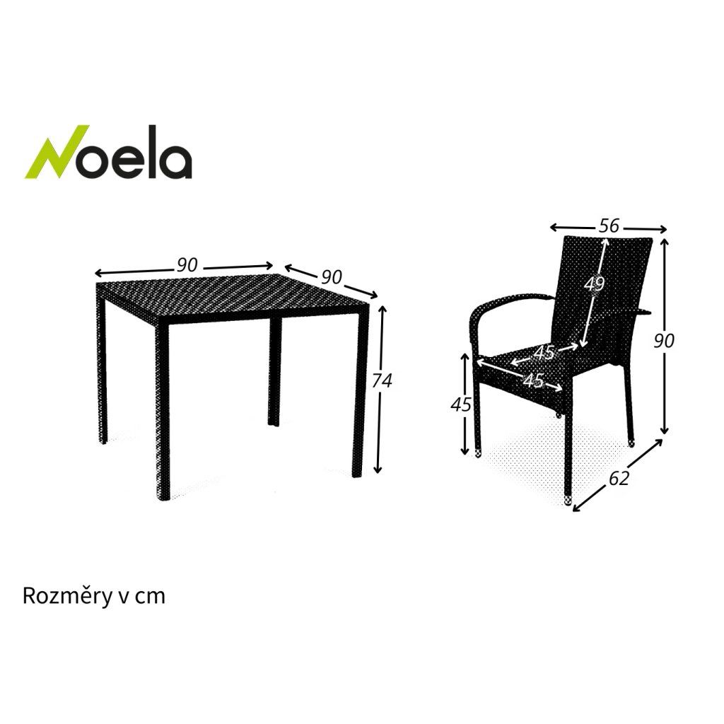 - Rozměry stolu: 90 x 90 x 74 cm (h x š x v)
