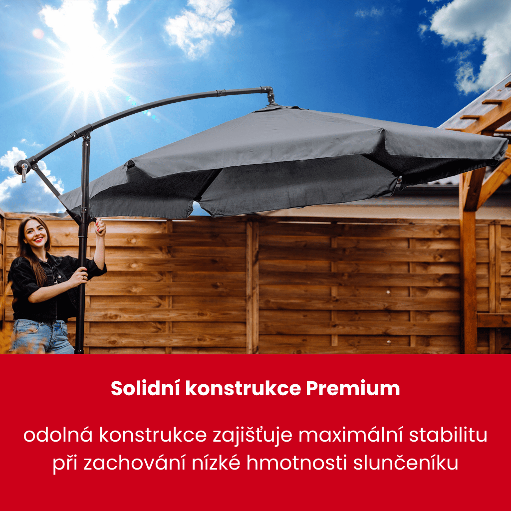 Slunečník s bočním ramenem je ideální, pokud chcete zastínit zahradní nábytek na terase, balkoně, zahradě či dvorku.