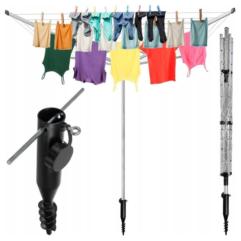 Stabilitu sušáku zajišťuje uchycení z odolného ABS materiálu, které lze snadno namontovat do betonu nebo do země.