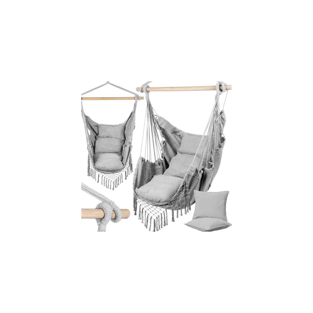 CalmaSeat 120 kg – Závěsné křeslo s dřevěnou příčkou a dvěma polštáři v sadě