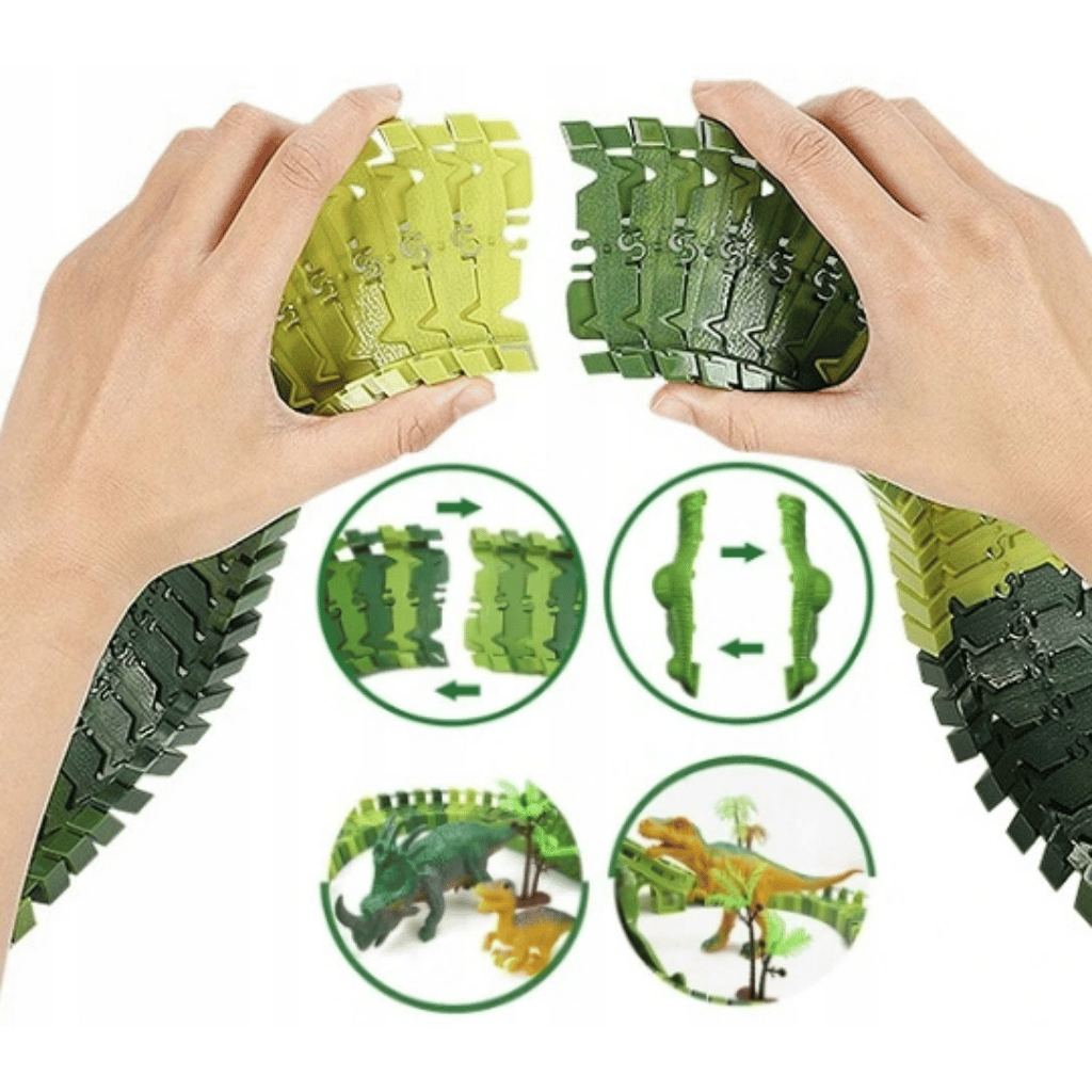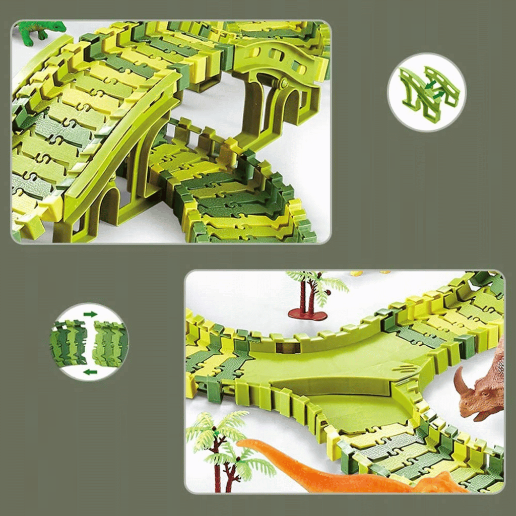 Zábavná autodráha, která vtáhne děti do světa dinosaurů a nekonečných závodů. Díky 270 dílkům si mohou postavit vlastní dinosauří park plný mostů, tunelů a zatáček.